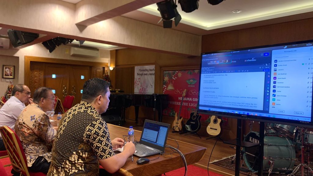 PT Modern Internasional Tbk menggelar Public Expose pada Selasa, 23 Desember 2025, yang diselenggarakan secara daring melalui platform Zoom. Kegiatan ini bertujuan untuk menyampaikan kinerja keuangan, arah strategis, serta rencana pengembangan usaha Perseroan kepada para pemegang saham, investor, analis, dan pemangku kepentingan lainnya, sebagai bagian dari komitmen keterbukaan informasi sesuai ketentuan OJK dan Bursa Efek Indonesia.