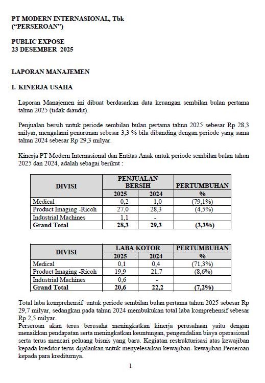 PT Modern Internasional Tbk menggelar Public Expose pada Selasa, 23 Desember 2025, yang diselenggarakan secara daring melalui platform Zoom. Kegiatan ini bertujuan untuk menyampaikan kinerja keuangan, […]